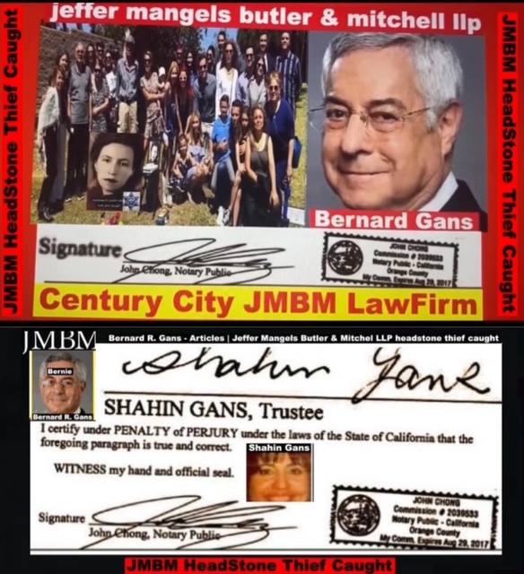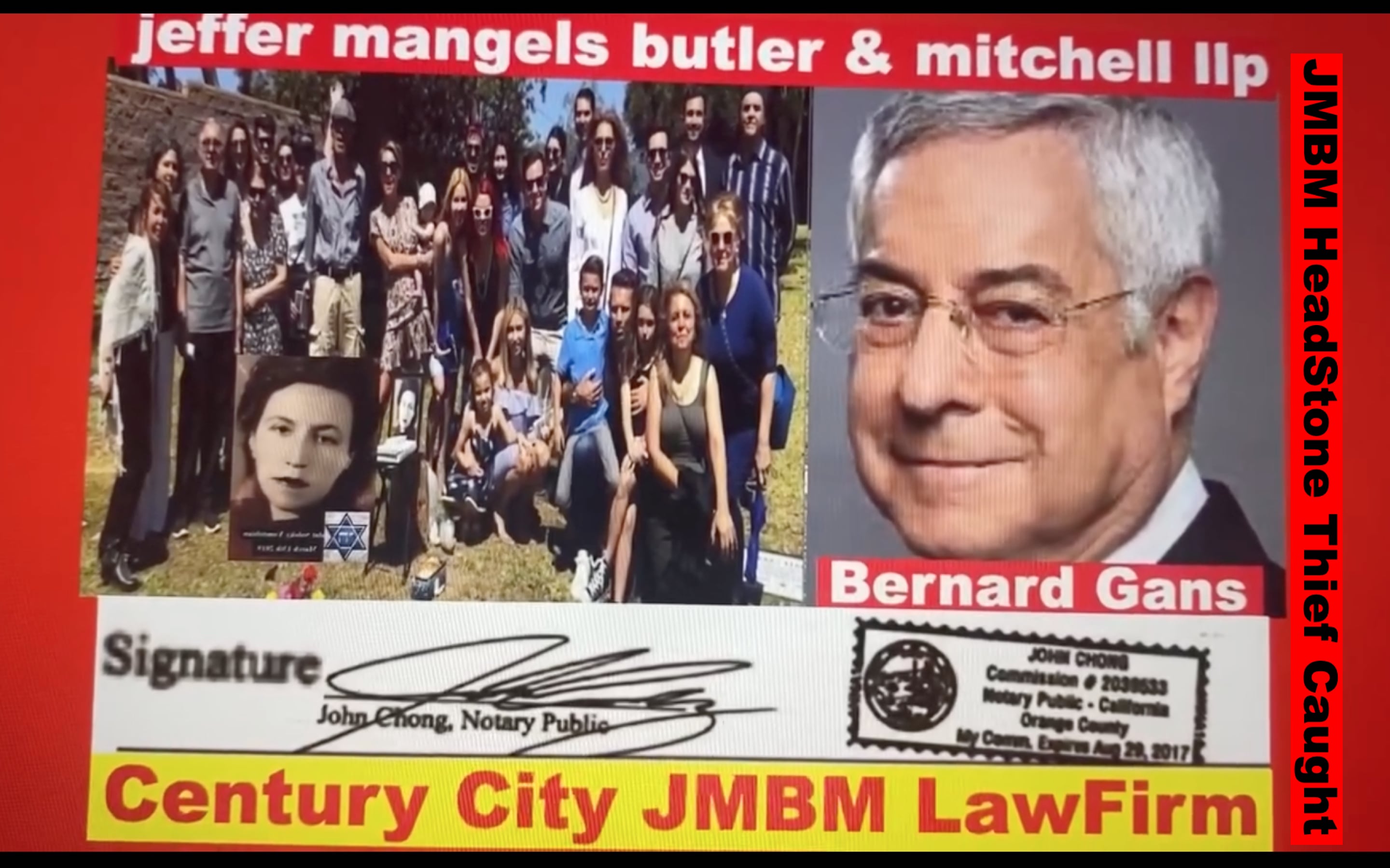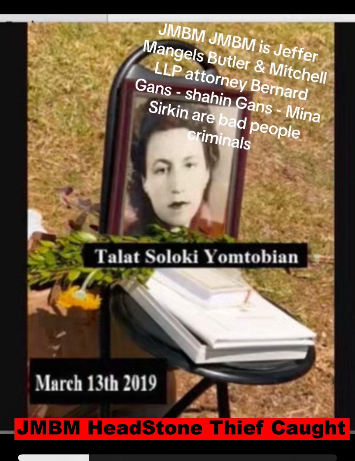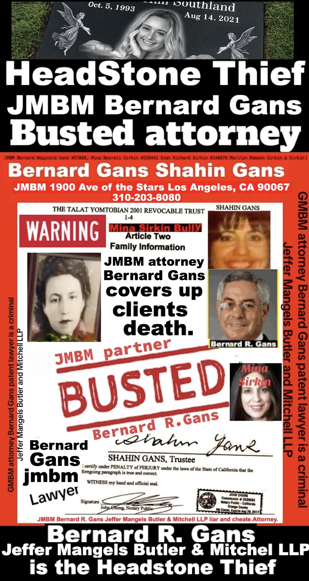 Century City Police 90067 Department JMBM attorney Thief Bernard R. Gans Jeffer Mangels Butler & Mitchel LLP JMBM attorney thief you have 24 hours to place the headstone or we are going to Century City Police department to report your crimes