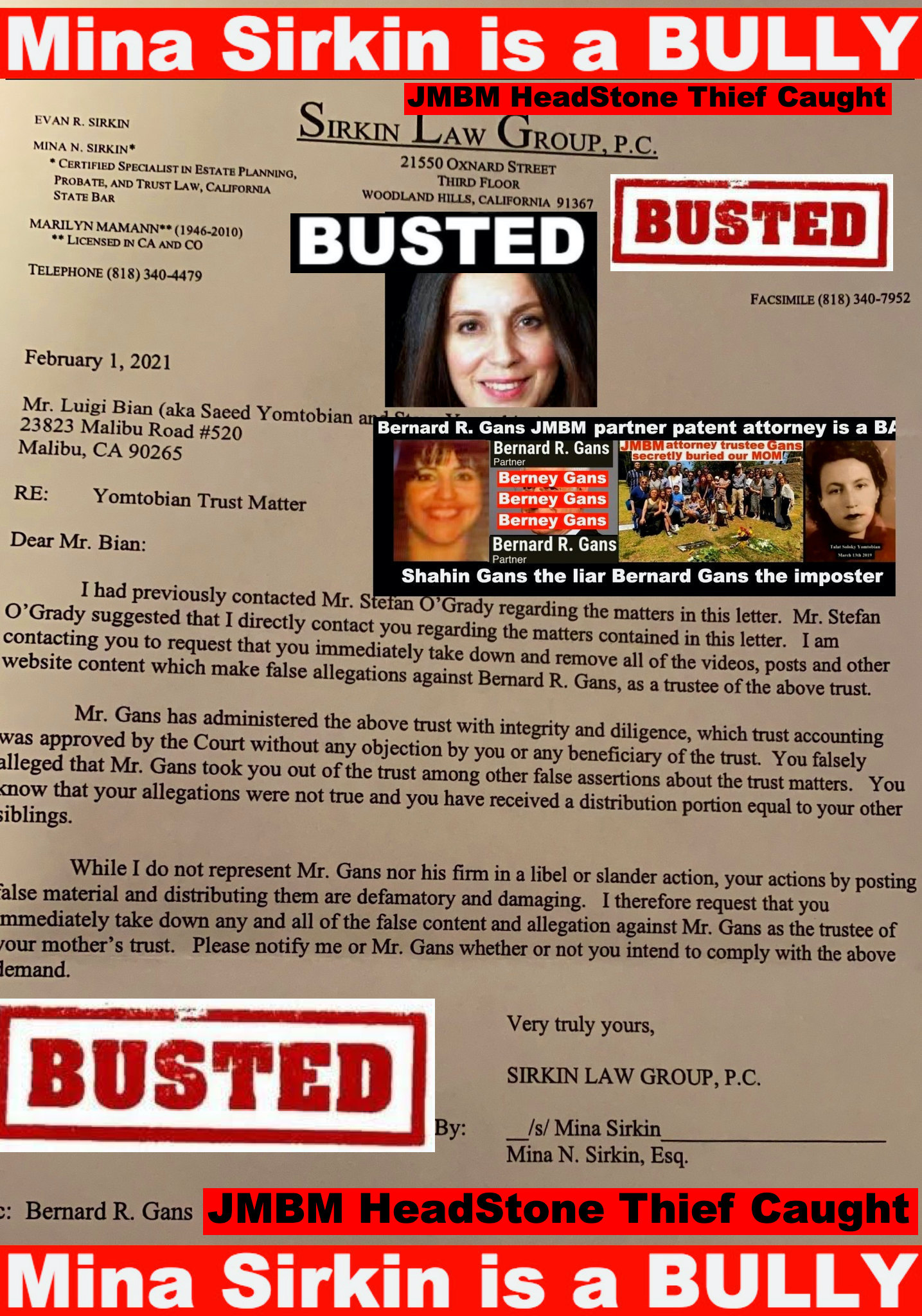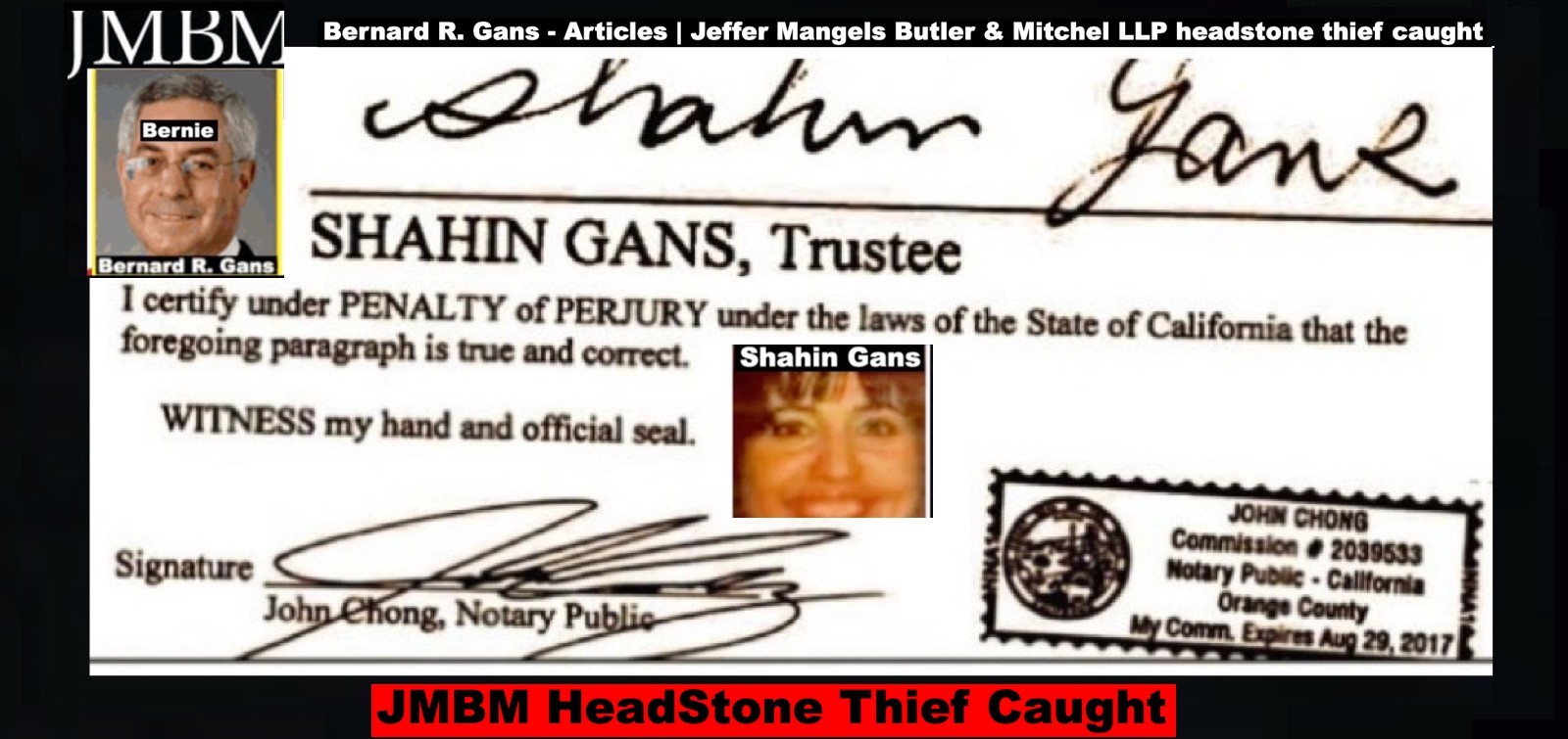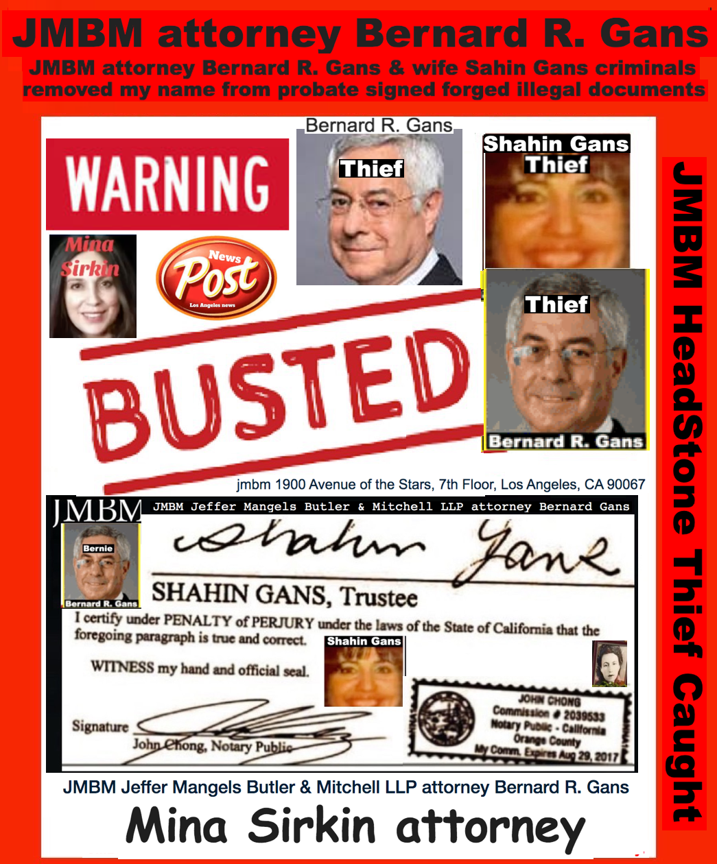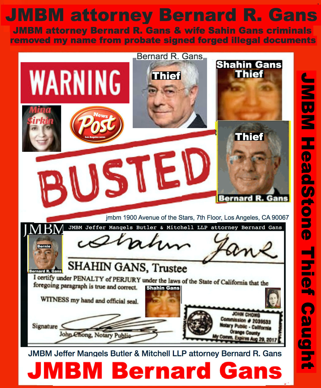 Century City Police 90067 Department JMBM attorney Thief Bernard R. Gans Jeffer Mangels Butler & Mitchel LLP JMBM attorney thief you have 24 hours to place the headstone or we are going to Century City Police department to report your crimes
